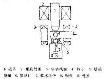 由圖22可見,除了用于磁懸浮轉子的螺旋線圈2外,在真空室下邊還設置一敏感線圈5,通過伺服電路控制螺旋線圈2的電流,使轉子懸浮在預定高度。在真空室兩側的一對驅動線圈3產生旋轉磁場,驅動轉子以每秒200~400轉的速度自轉。雖然轉子在給定的垂直位置會自動地趨向磁場處(一般在垂直對稱軸上),但若受外界擾動,轉子將圍繞軸作水平振動。圖中緊臨真空室下方的阻尼鋼針6可使這種振動衰減。